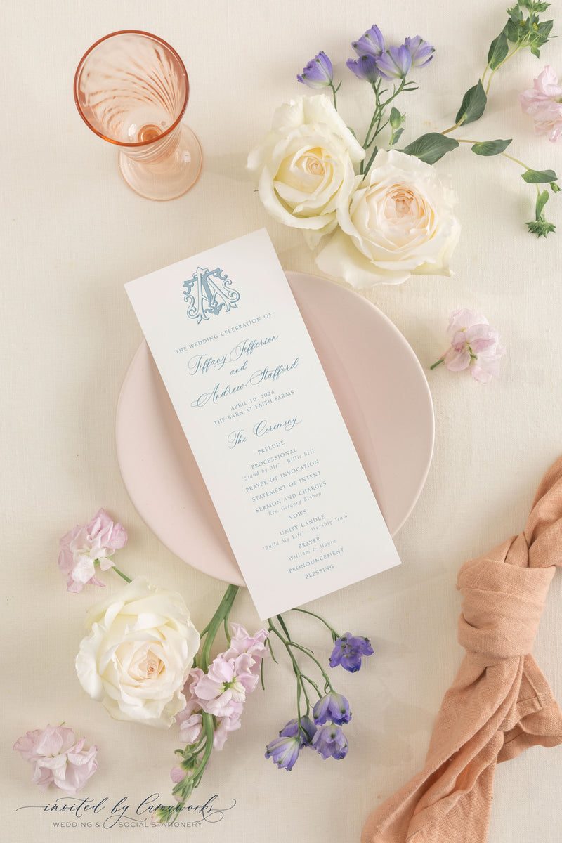 Once you’ve chosen your perfect monogram, simply share it with me and I’ll incorporate it into your wedding stationery. From invitations to menus, napkins, programs, and signage, your monogram becomes a thread that ties everything together. It’s a small detail with a big impact, giving your wedding a cohesive, polished look that feels both timeless and uniquely yours.